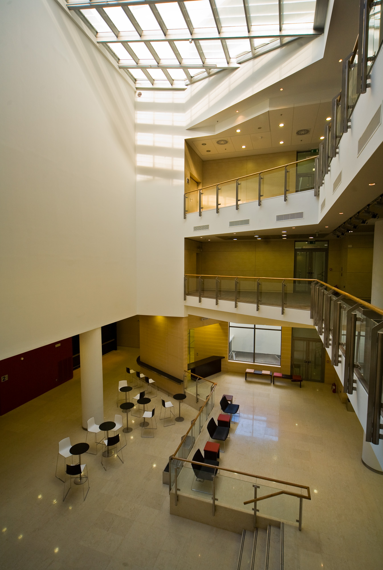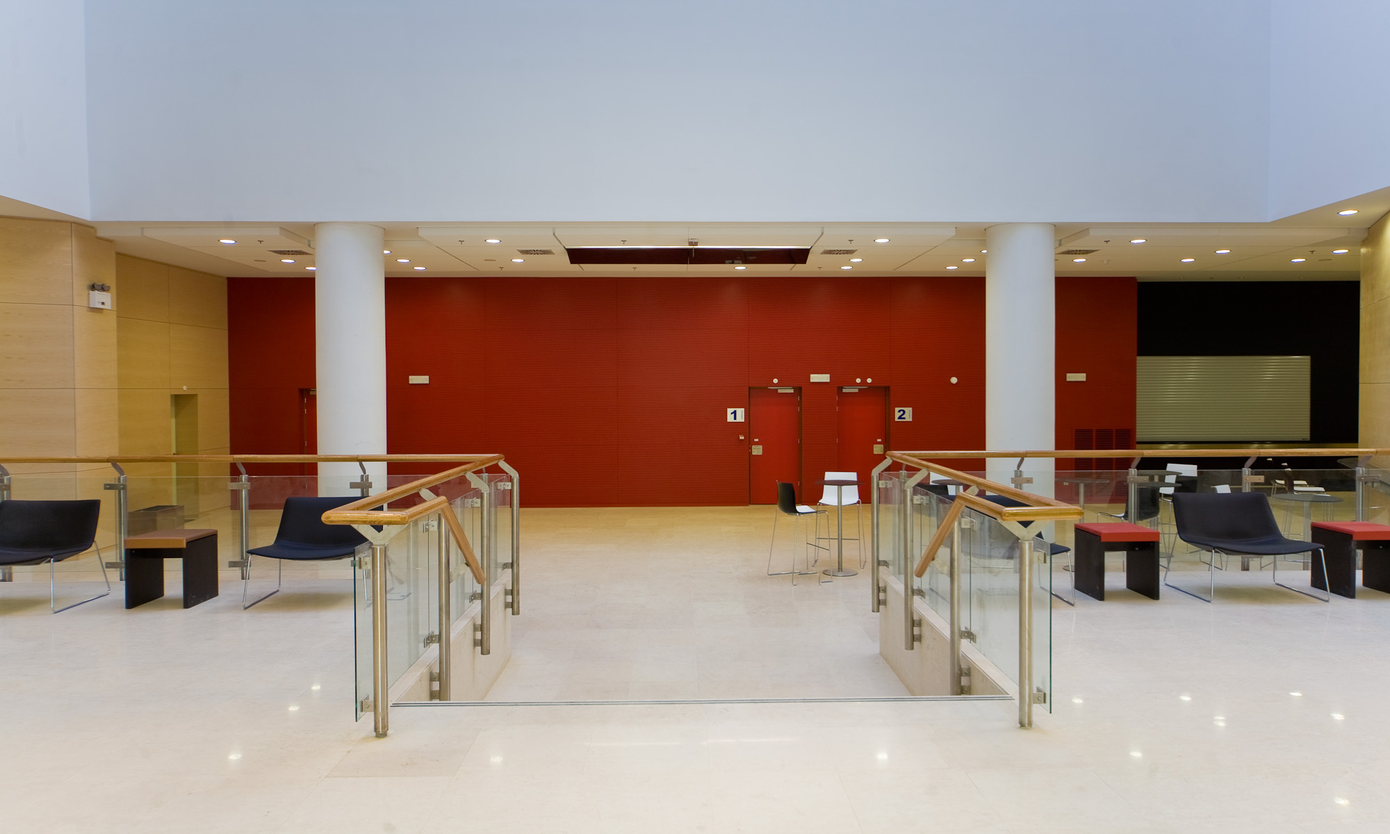 Το κέντρο διαθέτει αμφιθέατρο, αίθουσα κινηματογράφου, αίθουσα πολλαπλών χρήσεων, όπως και εκθεσιακό χώρο. Λειτουργούν επίσης δύο café – bar, bar – εστιατόριο (κλειστό και υπαίθριο) και το πωλητήριο του Ιδρύματος. Το αμφιθέατρο, στο οποίο πραγματοποιούνται οι ομιλίες, παραπέμπει σε κλασσικά θέατρα λόγω της μορφολογίας της σκηνής και των κερκίδων, ενώ έχει χωρητικότητα 330 ατόμων.